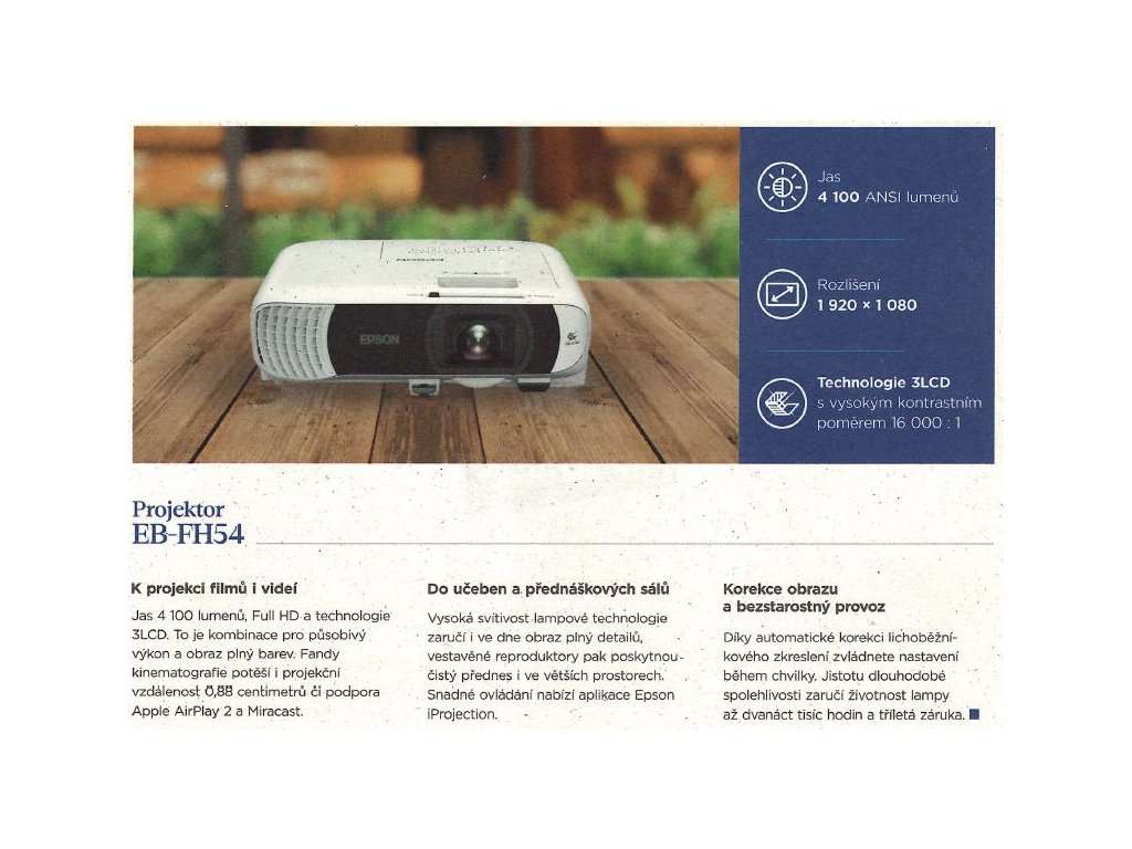 Pokud Vám tento projektor nevyhovujte, navštivte stránky výrobce nejprodávanějších projektorů Epson a vyberte si pro Vás nejvhodnější.